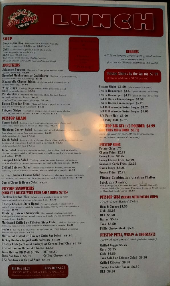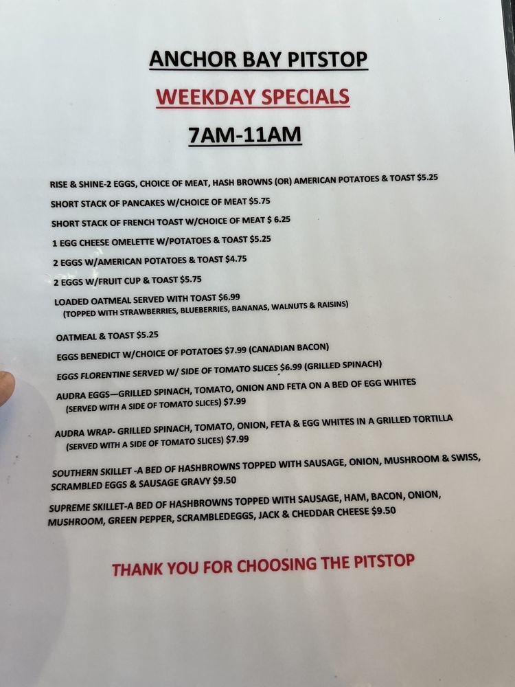 Welcome to Anchor Bay Pit Stop, the go-to diner in New Baltimore, Michigan, known for its hearty homemade-style cuisine and friendly servers. With a varied menu that includes many vegetarian options, this casual spot is perfect for breakfast, brunch, or lunch. Customers rave about the delicious food, efficient service, and warm atmosphere. From classic fresh breakfast dishes to mouth-watering burgers, omelettes, and skillet meals, there is something for everyone at Anchor Bay Pit Stop. Don't miss out on their signature dishes like chocolate chip pancakes, egg, ham, and cheese croissant, and fish n' chips on Fridays. Whether you're dining in or opting for their convenient drive-thru, you're sure to be impressed by the quality and taste of the food here. Come experience the charm and great food at Anchor Bay Pit Stop!